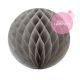 Petite boule en papier fin alvéolé gris, idéale pour une décoration murale de chambre de bébé. Assemblée avec d'autres lampions et pompons, une idée tendance et petit prix. Montage et accrochage facile : fermeture autocollante et petit cordon inclus.