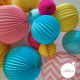 Grand lampion en papier rouge pour décorer une fête d'anniversaire. À déplier délicatement et à fixer grâce à leur petite attache.